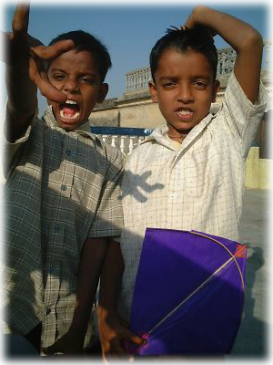 宿の隣に住むガキ大将とその友達。ふたりともこの顔からわかるようにメチャメチャやんちゃ。凧が大好きで、隙あらば凧をねだってくるちゃっかりもの(旅の日記あり) |