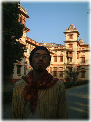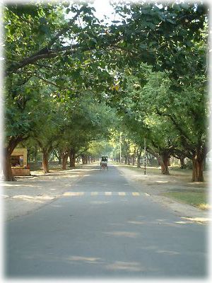 一瞬「ここがホントにバラナシ?」と思ってしまったバラナシ・ヒンドゥー大学の構内。バラナシ一有名な大学はまるでアメリカのキャンパスみたい。左の写真と好対照でしょう |
