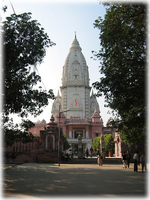 大学の構内にはこーんな立派な寺院まであるんです。さすが聖地バラナシ。ここだけは学生意外の人も来ていて、熱心に参拝していました |