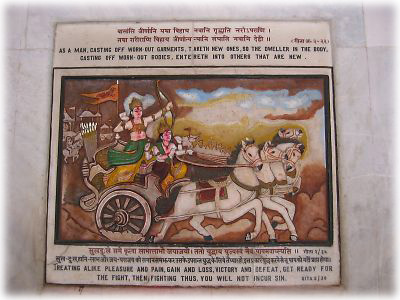![]() そのヴィシュワナート寺院にあった壁絵&解説がファンタジックでカワイイ。人物の額が赤くなっているのは参拝に来た人が付けたティカ |