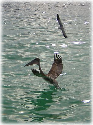 この海にはなんと野生のペリカンまでいて、平気で人の前を泳いでいくのだ。ペリカンってよく見ると、なんだかユーモラスな形をしているのね |