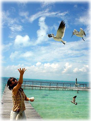 世界的なリゾート地として知られるカンクンから船で30分ほど行ったところに、イスラムへーレスという小さな島があります。肌寒いニューヨークからカンクンに着いた私たちは当初から「とりあえず、バカンスがしたい!」とばかり、まっしぐらにこの島を目指しました。青い海、白い雲……カリブ海の島はやっぱりサイコーなのです