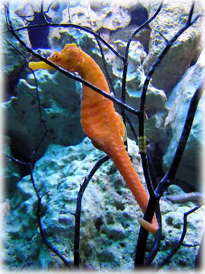 海のプリンス、タツノオトシゴ。こうやってまじまじと見ると、なんてファニーな形をしてるんでしょ! しっぽをくるくると巻きつけてじっとしている姿も愛らしく、一度飼ってみたいものです |