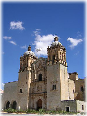 オアハカの街なみは世界遺産に登録されているが、その象徴的な建物といえばこのサントドミンゴ教会。1世紀かけて造られたメキシコ風バロック建築の代表作で、威風堂々とした趣がある |