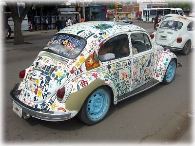 ![]() 街にはデコラティブに装飾したこんな車も。いやあ、かわいいけど、自分の車をここまでデコレーションするには勇気がいるな |