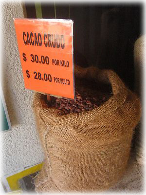 このお店では、精製する前のカカオの実まで売っています。1キロ30ペソ=約300円は安いのか高いのか? |