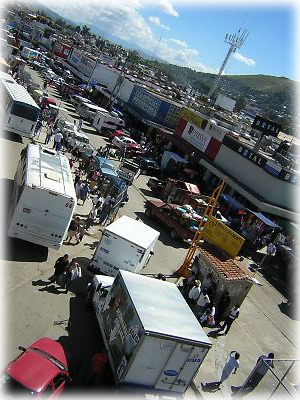 バスターミナル付近はいつも大渋滞。人も車も排気ガスもいっぱいに溢れている。オアハカは州都でもあるから、人の出入りが多いのだ |