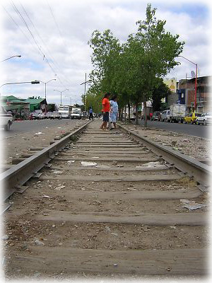 街中に堂々と走っている線路。もちろん柵も何もなく、市民は普通にレールの上をスタスタ歩いている。なにごとも「危ない」と囲ってしまう日本とは精神構造が違うなあ |