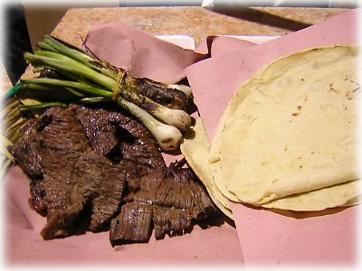 ![]() さっそく焼いてもらった牛肉、長ネギ、そしてメキシコ料理には欠かせないトルティーヤ。何がウマイって、この長ネギがウマイ! こりこりしてて、しかも甘みがあって……絶品でした |