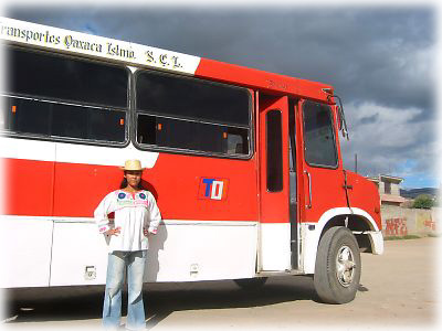 ![]() ちょっと郊外へ出かけるときは、こんなバスに乗って。メキシコでもごたぶんにもれず、バスは満員になってからの出発です |