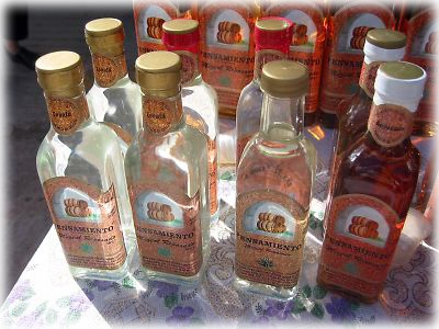 ![]() で、こちらがメスカルの実物。プレーンなものは無色透明だが、中にはイモ虫入りやらフルーツ味など、色々と種類がある。アルコール度数は結構高い |