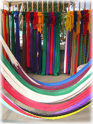 色とりどりのハンモックを売る店。こういう店を見つけると、つい「あ〜!」と奇声をあげて近寄りたくなる(笑)。でもかさばるから買えないのが旅行者の悲しいところ |