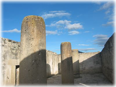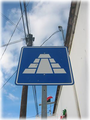 オアハカ近郊のミトラ遺跡に行く道すがら、こんな看板を見かけました。コレはれっきとした「遺跡マーク」。こういうちょっとしたところにお国柄って出るような気がします |