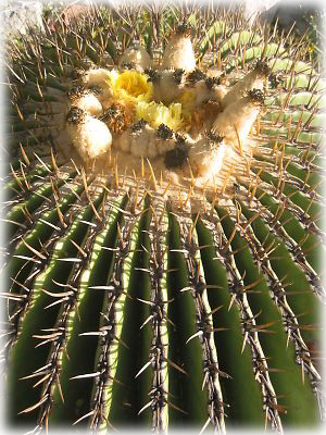 とげとげのサボテンは、もう少しで花が咲きそう。そういえば昔「サボテンの花」という歌がありましたが、こうやって実際に目にすると……でもどんな歌だったけ?(笑) |