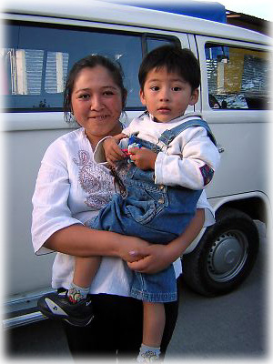 宿に戻る途中、お母さんと子供をナンパしてパチリ。メキシコはインディヘナとスペイン系の混血の人も多く、彼女たちのようにどことなく日本人のようにも見える人も多い |