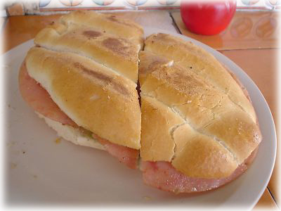 ![]() メキシコでよく食べたものといえばトルタス。なんてことない普通のサンドイッチだけど、店によってはかなりレベル高し! こちらはアボガドとハム入り |