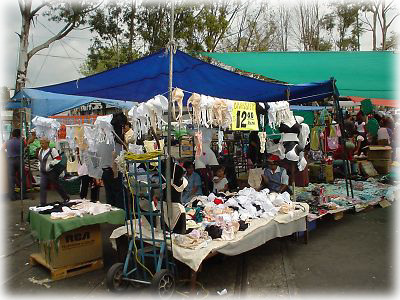![]() とにかくこの市場は色々な物が売っていて、歩いていて飽きることがない。ブラジャーだって、このとおり露天でブラブラと風に揺れているのです |