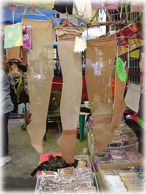 ストッキングはちょっとむっちり目の足型に入れて売られていました。セクシーでしょ、との声が聞こえてくる? |