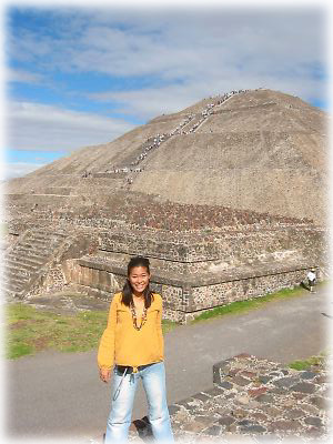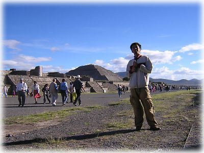 ![]() テオティワカン遺跡には、「死者の道」と呼ばれる道が南北にまっすぐ続いている。今日は天気もいいし、なんだかゴキゲンなのね |