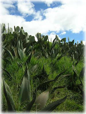 ピラミッドの脇には、各種さまざまなサボテンが生えていた。いかにもメキシコらしい光景だな |