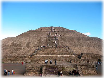 ![]() 月のピラミッドを正面から仰ぎ見ると、その雄大さにただただ感服してしまう。しかしよくこんな巨大なものを造ったよな……。かつてはこのピラミッドを中心に宗教儀式が行われていたらしい |