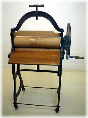 隣の機械は、こんな版画を作るもの。手でせっせと刷っていたんでしょうね。意外とキレイに刷れています |