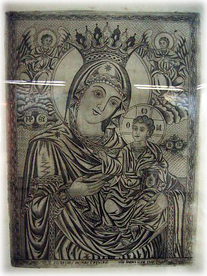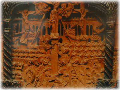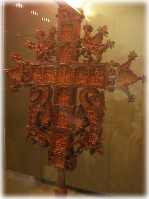 この博物館のお宝、細かい彫りの入った木製の十字架。19世紀初頭に僧ラファエロによって12年! かけて造られたのだとか。高さ50センチの大きなモノだけど、近寄ってみると、ホントに細かい彫刻が! |
