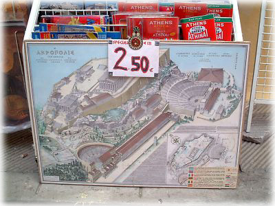 ![]() アクロポリスはアテネ市街を見下ろす小高い丘。こんなところにデデーンと遺跡が残っているのだから、さすがはギリシャです |