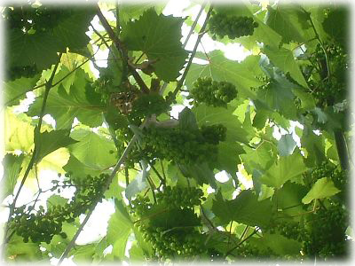![]() よくよく見るとこの緑はブドウの木。まだ粒の小さい緑のぶどうがいっぱいなってました。これもおいしいワインになるのかな? |