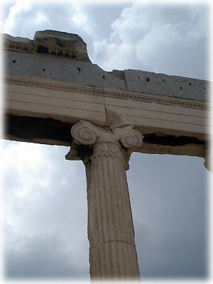 パルテノン神殿を印象づける、イオニア式の柱。優雅かつ機能的にできているのです。パルテノン宮殿はこんな柱が46本も立っていて、1本が10mもあるのだとか |