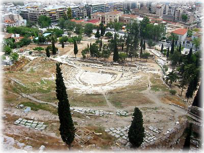 ![]() 丘の南側にあるイロド・アティコス音楽堂。161年に建築された音楽堂で、ななななんと! いまでも現役で使われているのです。夏の間にはオペラや劇などが上演されているとか。さすがギリシャ、恐れ入りました |
