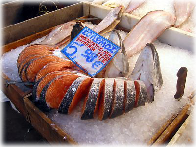 これだけの魚があっても、ポンポン売れていくのはさすが大都会アテネ。東京でもこんな市場が近所にあればいいのになあ…… |