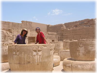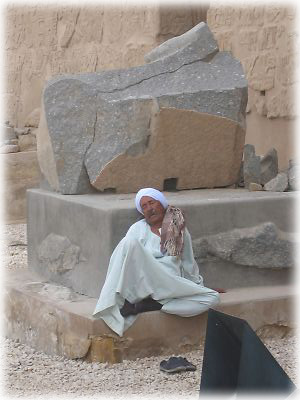 ルクソール、遺跡もスゴイが暑さもスゴイ! 遺跡をウロついては「なんかちょーだい」とバクシーシをねだるおっさんも、この暑さにはお手上げか。ぐったりしてらっしゃいました