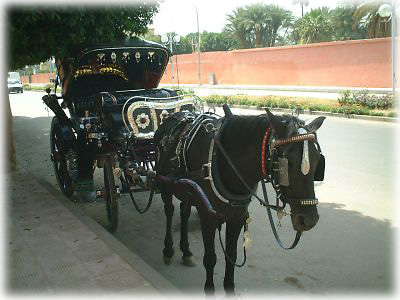 ![]() ルクソールの交通手段のひとつ、馬車。といってももちろん観光客用。お値段はもちろん高めなので、写真でガマンの子。それにこの暑さの中で馬を走らせるのは、まさに「馬車馬のように……」という気がしてきて、なんだか申し訳ない |