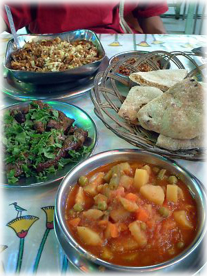 ムサカ、ケバブセットなどなどエジプト料理の夕べ。アフリカから来たせいか、地元食がバラエティに富んでいるのがウレシイ。実はこうやって写真を撮る間も惜しいほど、腹が減っていた…… |