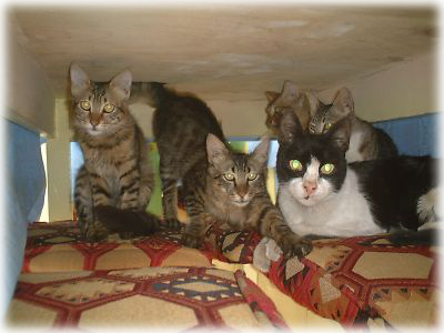 ![]() と思ったら、なにやら机の下でガサゴソと音がする……。テーブルクロスをめくってみてビックリ。猫がうじょうじょいる(笑)。このママ&子供ちゃんは皆おっとりしていて、写真を撮られていても平気で伸びをしたりしている。エジプトは中東らしく、猫は皆に可愛がられているせいか。でもカワイイなあ |