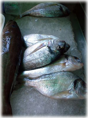 アレキサンドリアは地中海沿いの街だけに、シーフードがうまい街としても知られている。屋台に並べられた魚はみな新鮮 |