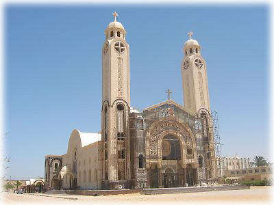 ![]() アレキサンドリア滞在2日目には、郊外のコプト教の巡礼地、アブー・ミーナーに足を伸ばしてみました。砂漠の地に突然ぽっかりと修道院のキテレツな建物が見えてきて……。この修道院&教会は1959年に建てられたもの。5世紀から聖地として知られるが、その当時のものは砂漠に点々と遺跡となって残っている |
