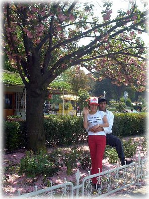 サクラの前でいちゃつくカップル。「シャッターを押して」と頼まれて構えたら、このポーズ。ついつい私たちのカメラにも収めてしまったじゃないか(笑)。トルコはムスリムが多いといっても、エジプトなんかと比べたら開放的で、カップルが手をつないで歩く姿は日常的に見られる |