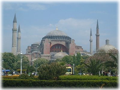 ![]() ブルーモスクに対面するように建っているアヤソフィア。当初キリスト教の教会として建てられて、その後モスクとして使われたという悲劇の建物。ここで妻はトルコ人と大ゲンカしたので、残念ながらあまりよい印象がない |