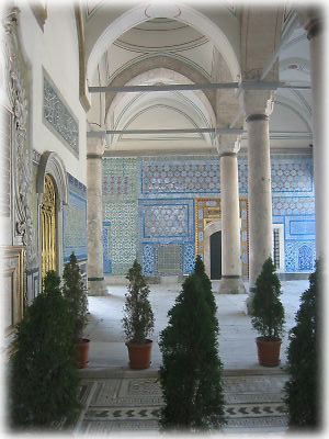 トプカプ宮殿の中にもタイルがいっぱい。このタイル、私たちはかなり気に入ってしまって、日本に帰ったらタイルを貼った家に住みたい! など、希望的期待(笑)をよく語っていました |