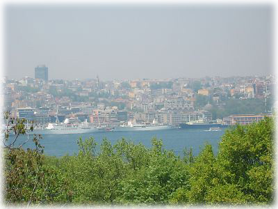 ![]() 宮殿は金角湾を見渡す一等地の高台にあります。テラスからの眺めはこのとおり、抜群。かつての王もこの位置からイスタンブールの街を見下ろし、悦に入っていたのでしょうか? |