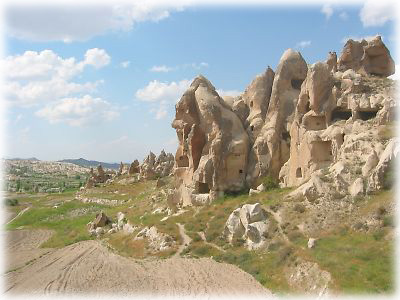 とにかくカッパドキアの景色は何を撮っても絵になる。ここに来れば誰でも「にわか岩マニア」になってしまうことでしょう。この景観の中で青い空に白い雲が悠々と流れていくさまを見ているのは気持ちいい |