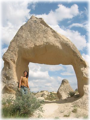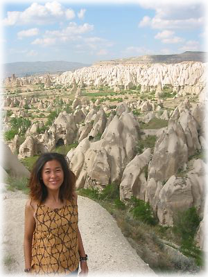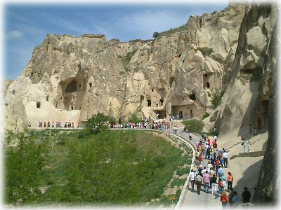 ![]() ギョレメの屋外博物館にて。数年前、カッパドキアをドキュメントしたTV番組がトルコ国内で放送されたこともあって、いまやこの地はトルコ人にとっても一大観光スポット。以前はここまで混むこともなかったそうですが、私たちが行ったときはうじゃうじゃ人がいました |