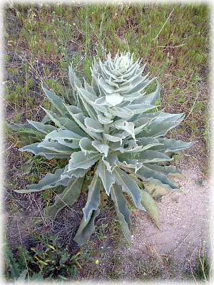 このあたりの土地は乾いているから、生えている草もなんだかタフそうな奴ばかり。コレも分厚い葉っぱに白い毛がびっしり生えたツワモノ。毒でも持ってそう? |