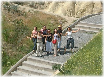 ![]() カッパドキアにはトルコの田舎から来た人も多いせいか、写真を撮っていると必ず「一緒に撮って〜」とお声がかかる。久々に味わう「プチ・スター気分」(笑)。一部を除いて、トルコ人はかなりいい人が多いという印象だ |