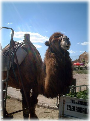 こんなところでラクダくんと遭遇。客を乗せて城塞を上り下りするのが彼の仕事。だいたいトルコってもともとラクダがいるの? と思ったが、ラクダくんはただただのんびりした目を見せるのみ。周囲にラクダ使いの人影が見えないんだけど、どこに行ったのかなあ |