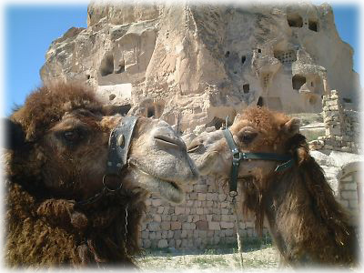 ![]() 奇岩とラクダくんふたり。ラクダってかわいいよねえ、優しそうな目をしてるし、鼻から口のラインはマヌケだし(笑)。性格も大人しいし、ピースフルな動物ナンバーワンでしょう |
