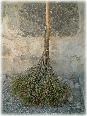 村の中で見つけたホウキ。たぶん自分たちで枝を集めて作ったのでしょう。元祖、手作りホウキという感じで、味がある一品ですな |