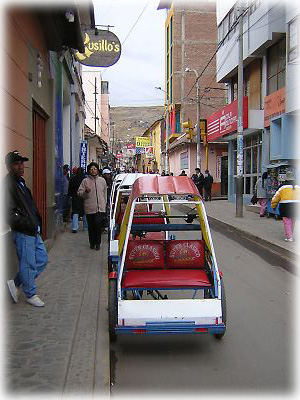 やや、どこかで見たような三輪タクシーを発見。アジアなんかではよくあるものですが、南米で見かけることはめったにない。近場に行くときは便利な乗り物 |